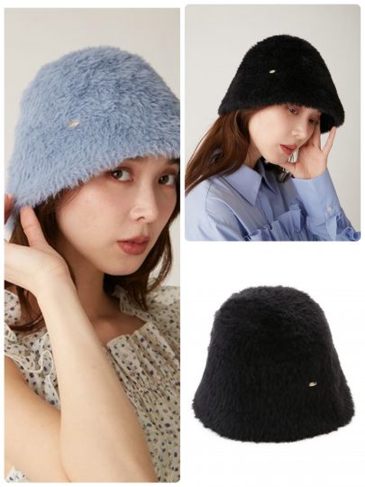 ファーのような毛足の長い糸で仕上げた、ふわふわのバケハでシーズンムードをON。ベーシックな形なのでさまざまなコーディネートと相性抜群です。