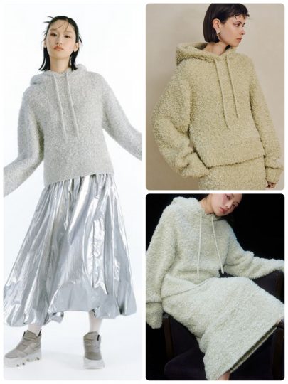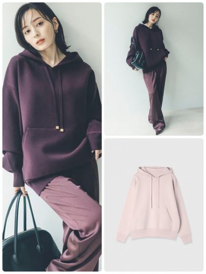 もちもちとした厚手のニット素材で仕上げたフーディーは、トップスとしてはもちろんアウターとしても活躍!
