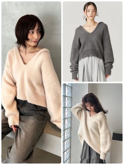 素材はきれいめな糸をベースに、フォックスとウールをブレンド。シーズンムードも満載なうえ、1枚でサラッと着こなしてもサマになるので大活躍必至です。