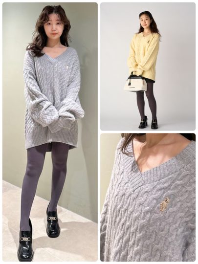 ミニワンピ、チュニックとして使えるケーブルニットワンピ。胸元にあしらったLily Bear刺繍が愛らしさを高めるポイントに。