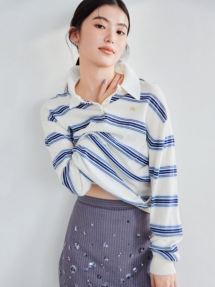 ボーダーポロニットトップス¥13,970/LILY BROWN