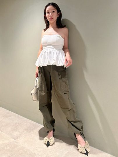 オケージョンシーンはもちろんのこと、カジュアルコーデのはずしとしても活躍。現在ブラックとフラワーを販売中です。