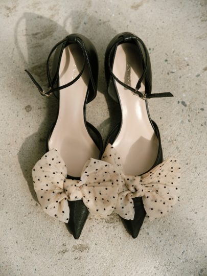 柔らかなシフォン素材のビッグリボンをあしらった、レディライクな一足。シャープなポインテッドトゥで大人要素も見え隠れ。歩きやすさ抜群の5cmヒールですが、シルエットの美しさは完璧そのものです。