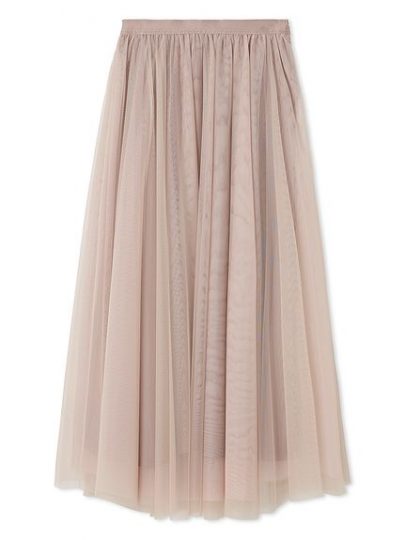 柔らかくて動きが出るチュールをたっぷりと使用したチュールスカートは、歩いたときのふわっと華やかな揺れ感がドラマティック。2枚のチュールを重ねたボリューム感がスペシャルな1着です。ウエストはぐるりと一周フラットなゴム仕様で、タックインも美しく決まります。