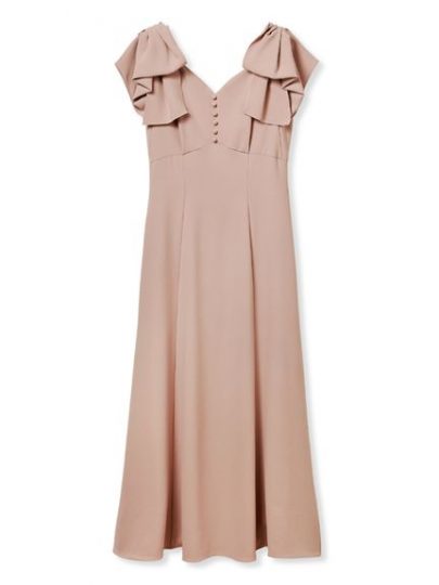 肩にリボンを乗せたいオケージョンワンピース。程良い肉感のあるマットな表地が、甘さを抑えて大人な印象に導きます。柔らかく落ち感のある生地で、着心地の良さも抜群です。前後V開きで抜け感を加え、レディな印象に。上見頃は程よく体にフィットさせ、スカート部分はナローシルエットで仕上げています。
