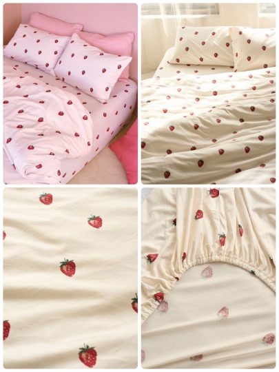 サイズは「ストロベリー柄3点セット(セミダブル)」「ストロベリー柄3点セット(シングル)」もご用意アリ。新生活のギフトにもオススメ。