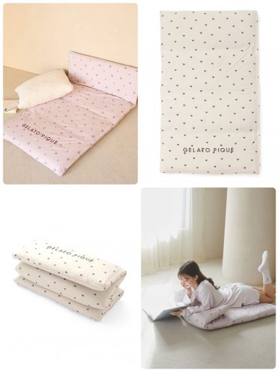 「アイボリー(ハート柄)」「ピンク(チェリー柄)」「ブルー(小花柄)」の3色展開で、縦123×横70㎝サイズ。
