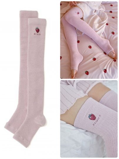 着圧ソックスとは思えないほど可愛いビジュアルはピケならでは♡ 大人可愛いストロベリー刺繍入りです。