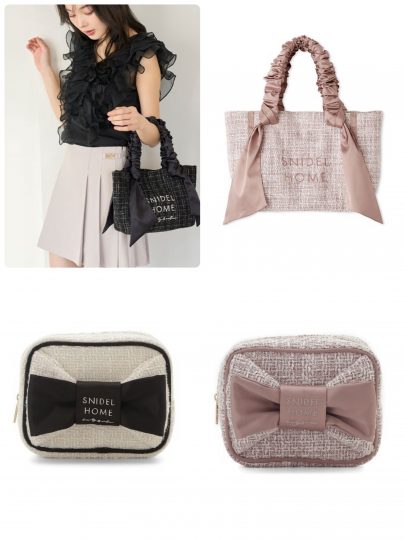 ギャザーハンドルとリボンデザインでおなじみのトートバッグシリーズに、ラメ糸を織り交ぜたサマーツイード素材が登場。ランチバッグやちょっとしたお出かけに使いやすい小さめのサイズ感で、内ポケットも付いています。