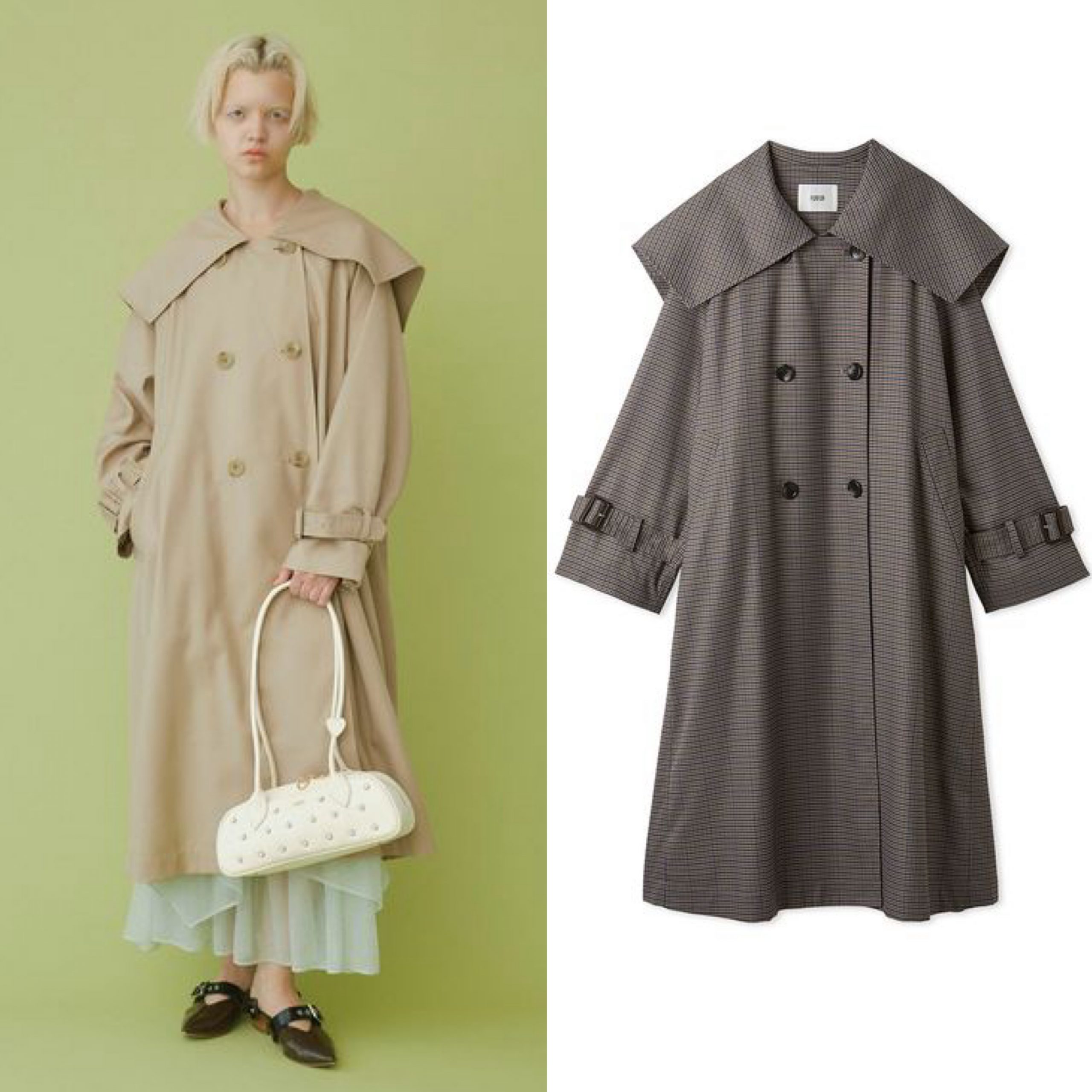 残りわずかになっている、FURFURらしいビックカラーのトレンチ。セーラーカラー風のデザインで、女性らしく着られるのがポイント。レイヤードしやすいビックサイズ。ビッグカラートレンチコート/FURFUR