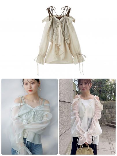 程よい透け感と艶感に加え、やわらかい質感が女性らしいブラウスとキャミのセット。肌を透かして見せることで、露出感を抑え、上品な印象が叶います。