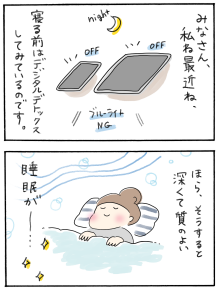 私は入浴後にはおやすみモードに設定し、なるべくスマートフォンと距離を置くようにしています。