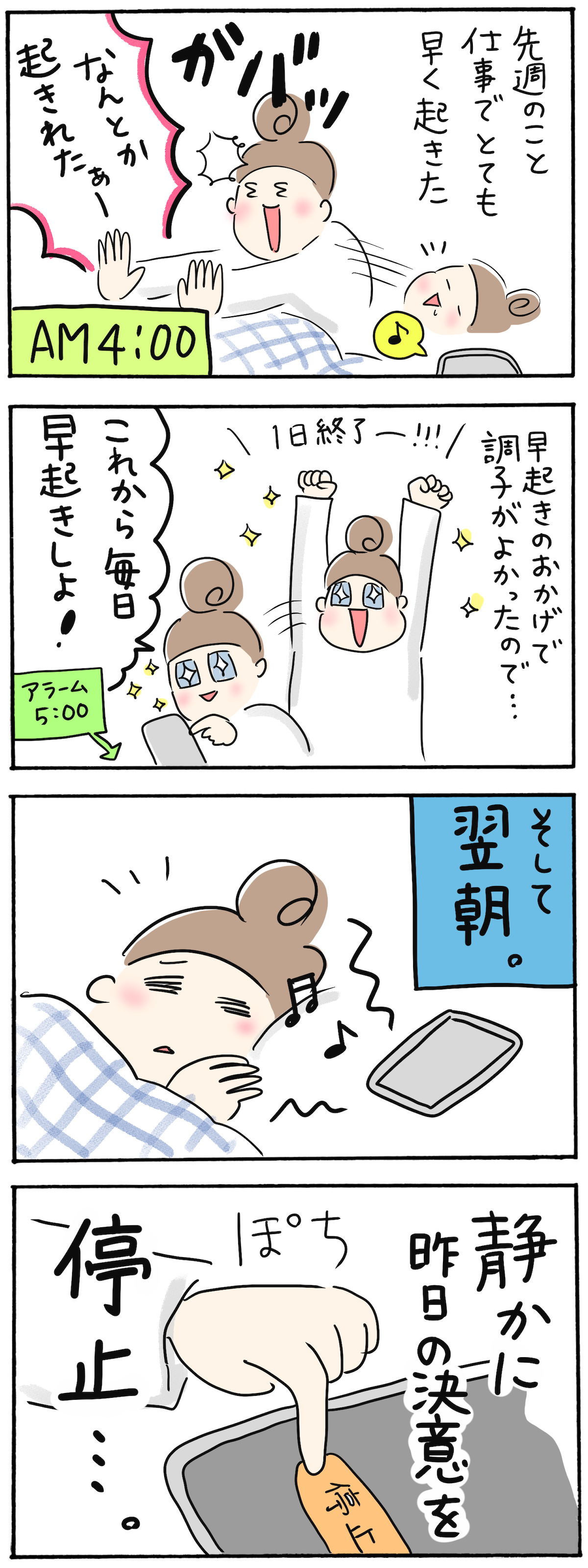 早起きの気持ちよさをこんなに感じても、翌朝には決意も停止してしまう私。
