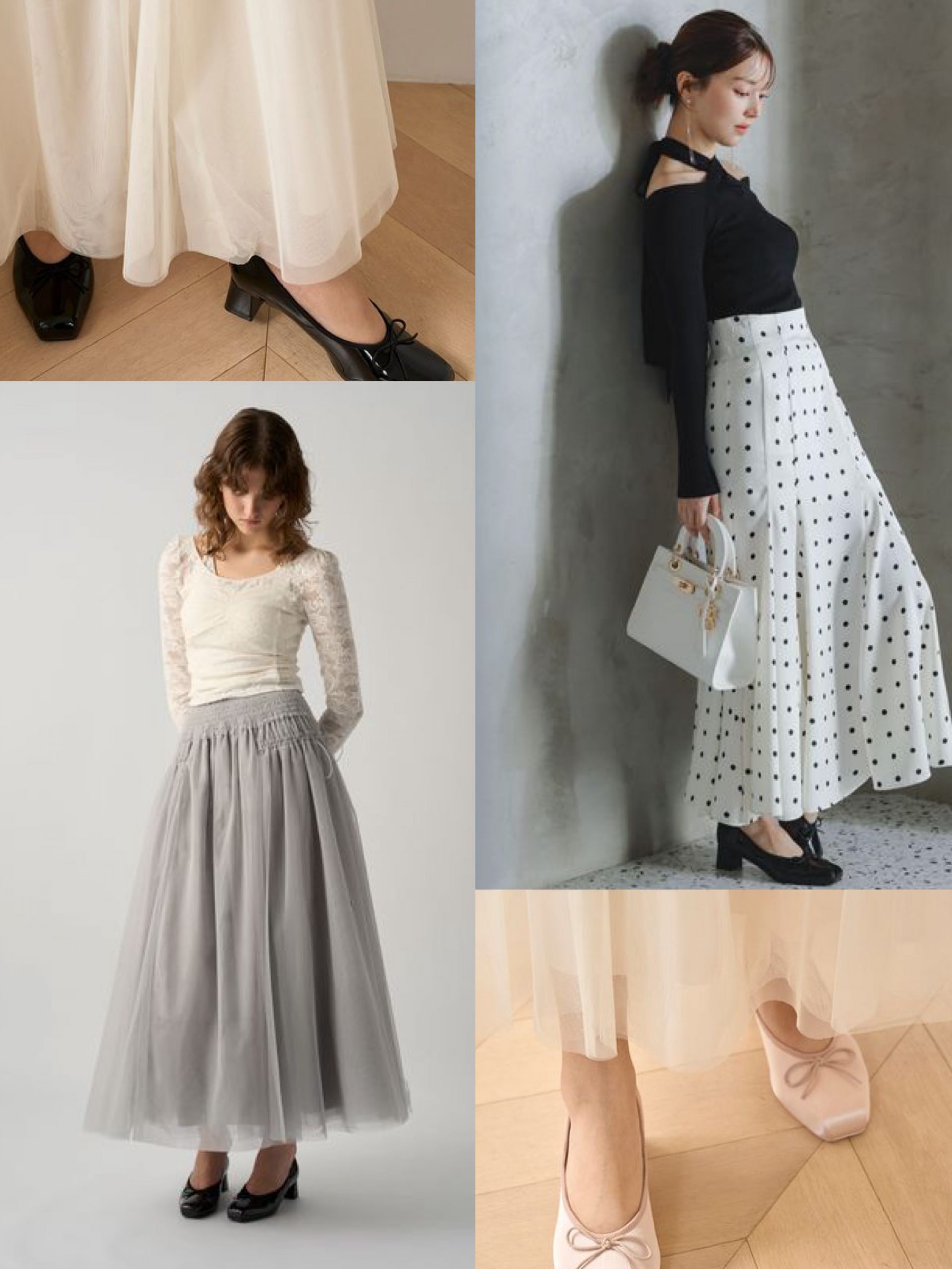 ↑のコーデ写真やスナップを参考に、こんなバレエモチーフのある服にも合いそう!なアイテムを集めてみました!