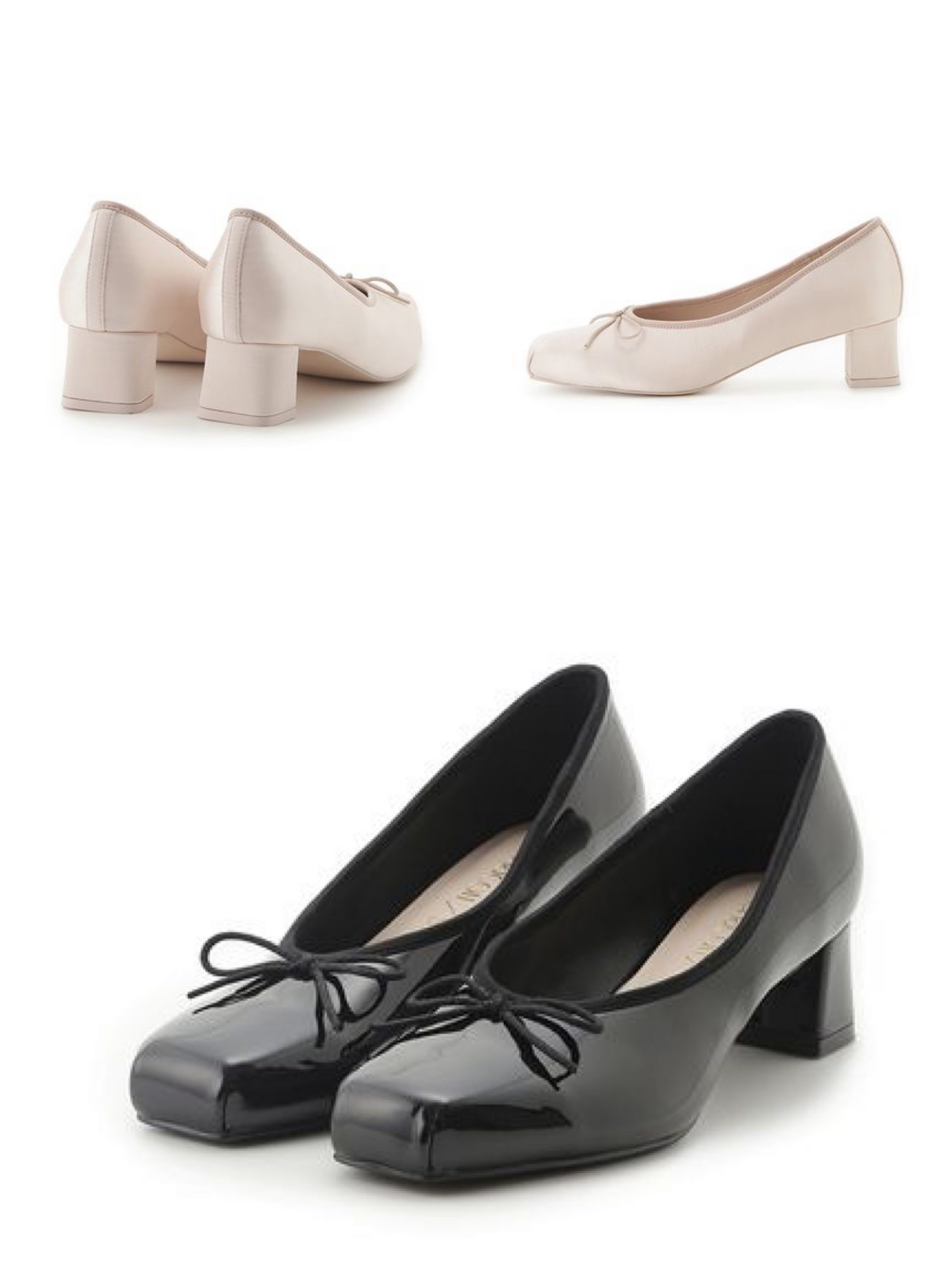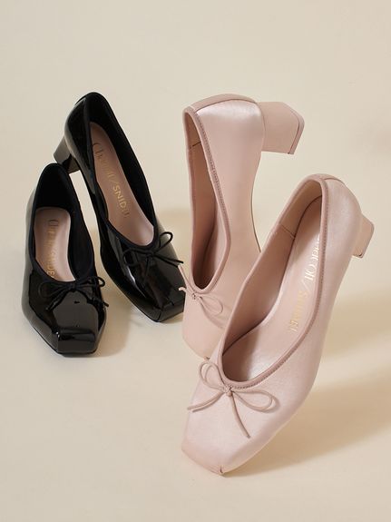 ヒールの高さは4.4cm。ぺたんこすぎないので疲れにくく、安定感のあるチャンキーヒールなので、お出かけにもぴったり。同色の繊細なリボンも上品。ブラックはエナメル素材、ベージュピンクは光沢のあるサテン生地を使っています。お値段は¥17,930 。【Chacott】コラボシューズ/SNIDEL