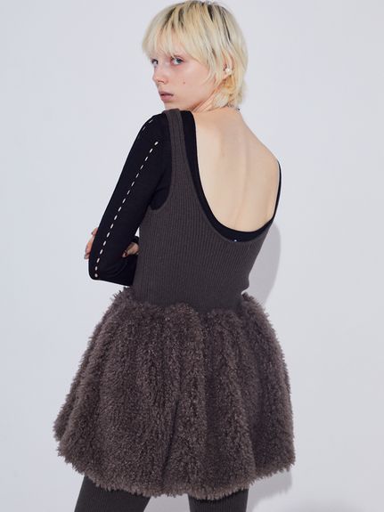 こちらも背中が広めにあいてチュチュのようなペプラムがついたベスト。Wool Rib Fur Balloon Knit Vest /SORIN