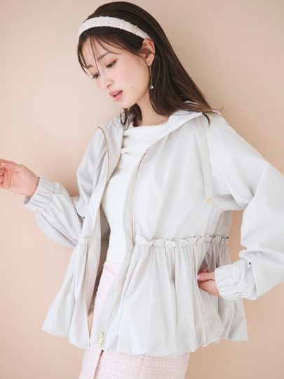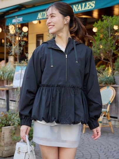 ウエスト切り替え&絞れる仕様でスタイルUP、メリハリのあるペプラムシルエットも楽しめます。裾はトレンドのバルーン仕立て。撥水加工が施されているから、急な雨でも安心。ブラックはUSAGI ONLINE限定。
