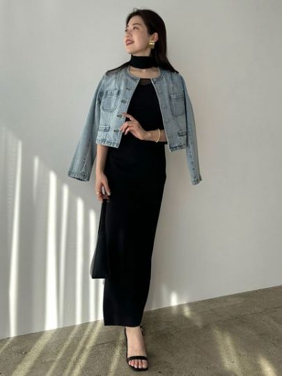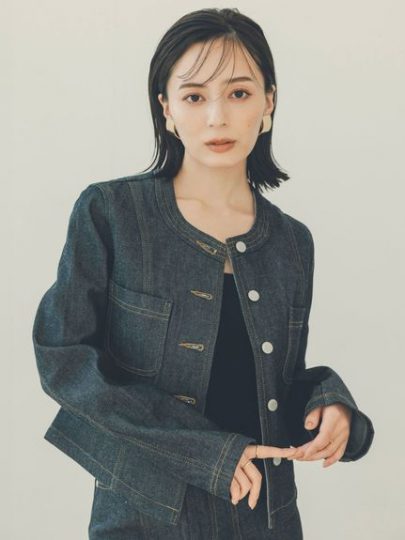 ノーカラーデニムジャケット/anuans