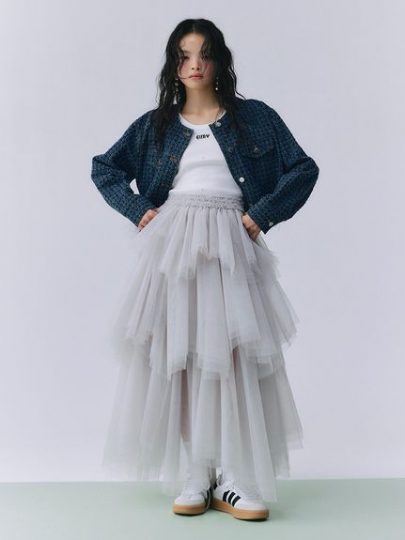 ツイードライクな風合いが特徴のデニムジャケット。カジュアルなデニム素材ながらも上品な雰囲気を演出できるデザインは、ほかでは見つからないはず。クロップド丈でトレンド感をプラスし、フロントのボタンやフリンジ加工がアクセントに。