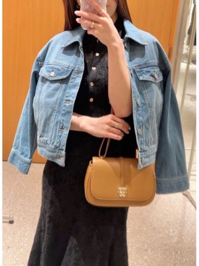ジュエリーのような繊細なパールを散りばめたデザイン。実はデニム見えなツイル生地で、濃色でも色落ちする事がなく取り扱いしやすい点もポイント。ボックス型のクロップド丈は、ワンピーススタイルの肩からかけたり、パンツからスカートまで幅広いアイテムに合わせやすいシルエットです。