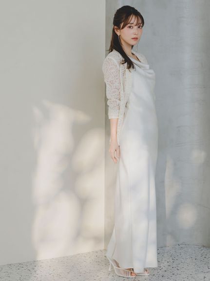 色っぽいドレスとしても重宝される、サテンワンピース。このSNIDELのドレスは、なんと同系色のレースジャケットとセクシーなキャミワンピがセットに。ナイトドレス用に1枚あると、便利そう。レースジャケット×サテンキャミワンピースSET /SNIDEL