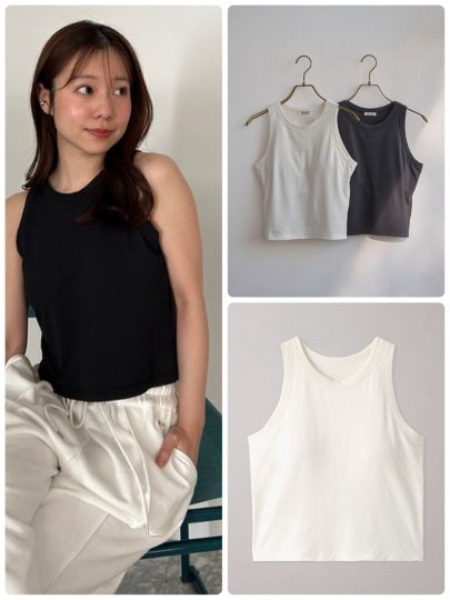 今の時期ならインナーとして、夏にはメインとして使えるカップイントップスをピックアップ。合わせやすさを一番に考えて、とにかくシンプルなデザインを中心にご紹介します!