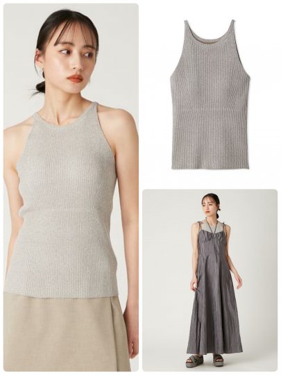 定番人気のカップインニットは、レイヤードスタイルから単品までさまざまな着こなしにマッチ。トレンド感あふれるアメスリデザインでシンプルな着こなしもサマになります。
