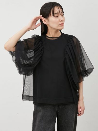 ボリュームスリーブチュールレイヤードトップス/Mila Owen