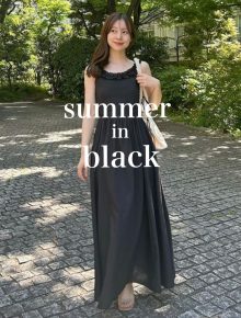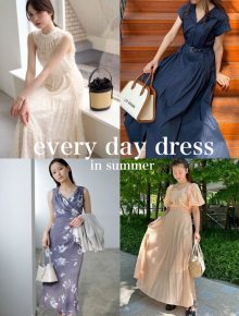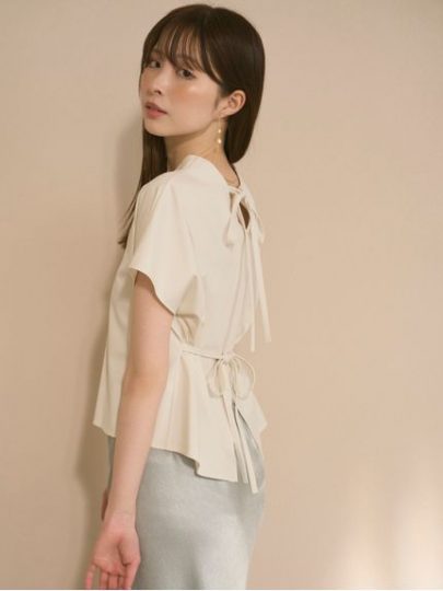 デコルテを美しく見せてくれるスキッパーネックラインや、バックスタイルにあしらったリボンディティールなど、フェミニンな要素でカジュアルになり過ぎず、上品でキレイめなスタイルに導いてくれます。