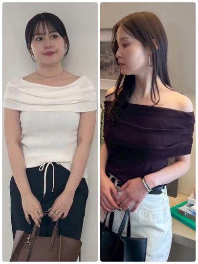 接触冷感&UVカットのオフショルニット。伸びの良いリブ編みで、デコルテラインきれいに魅せるシルエット。一枚でエレガントに装えるので、シンプルなボトムを合わせるだけでもこなれたスタイルが作れます。