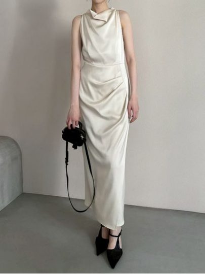 20代の方には、スリップドレスやアシンメトリックショルダーデザインといった大胆なシルエットもよいでしょう。若々しい印象を引き立てつつ、トレンドを取り入れたオシャレコーデが完成します。また、自信が気になる部分がある場合、フレアスカートやペプラムデザインのドレスを選ぶことで、体型カバーしつつエレガントな雰囲気を演出できます。