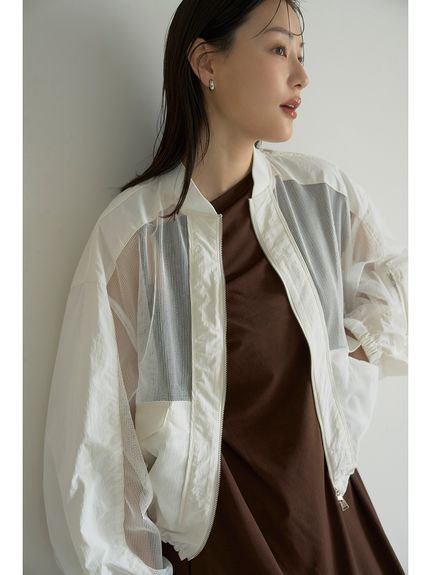 現在、売り切れ中のメッシュブルゾン。シンプルな形で思いっきり透けてるデザインがおしゃれ。お店で見つけたらすぐGETを。メッシュブルゾン/emmi