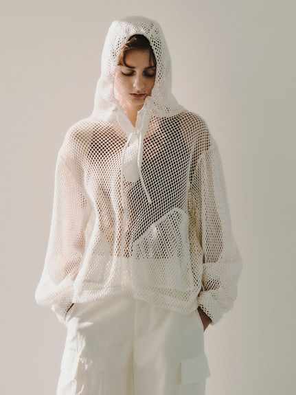 ヘルシーでかっこいいメッシュパーカ。残りは白のみ。メッシュフーディートップス/emmi