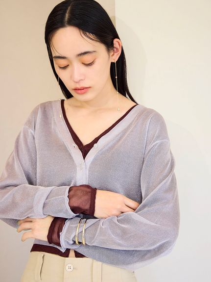 使い勝手のいい、コンパクトな丈感のシアーカーディガン。ラメのキラキラが高見えさせてくれます。Vカット。シアーラメカーディガン/emmi
