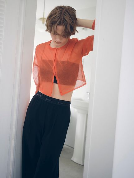キャミワンピースやタンクトップなどと合わせたい、シンプルなカーディガン。ボタンを全部しめた着こなしも素敵。リネン混シアーニットカーディガン/emmi