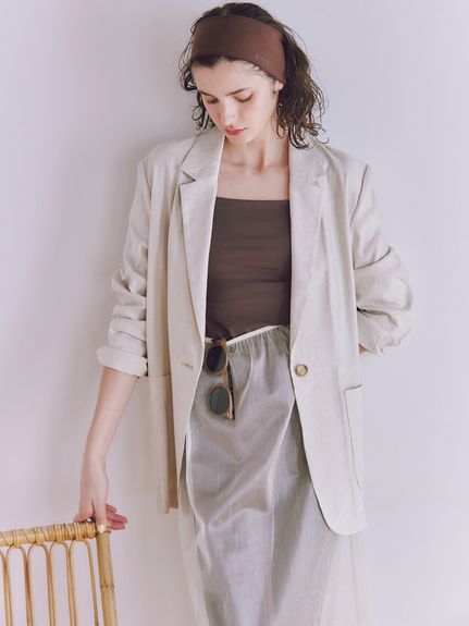 手洗い可能な、リネン混のテーラード。メンズライクなデザイン。リネン混テーラードジャケット/emmi