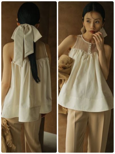ボディラインを美しく魅せながら、贅沢なボリュームシルエットを楽しめるノースリーブブラウス。胸下で高めに切り替え、裾に向かってふんわり広がるシルエットで、コンパクトで華奢な印象に。部分的に繊細なシアー素材を使用することで軽やかさをプラス。デイリーにはもちろん、特別なシーンにもぴったりなブラウスです。