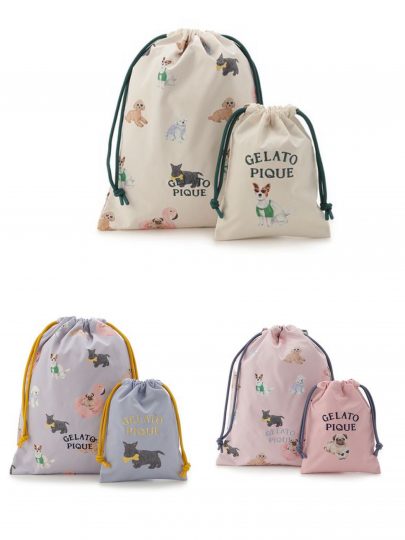 大きな巾着は薄手の着替えなどが入るサイズ感で、小さな巾着はスキンケアや小物入れに重宝。旅行や趣味など、さまざまなシーンで大活躍してくれるはず。愛犬家の友達へのギフトにも最適です。