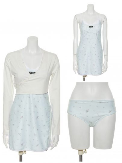 大人気のこちら再入荷中! ボレロ型のラッシュガード、ペプラムキャミソール、ハイウエストショーツをセットにした3ピーススイムウェア。まるで洋服のようなデザインはトレンド感があり、肌の露出が気になる方も抵抗なく着用いただけます。