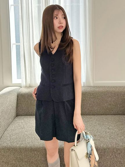 マニッシュなジレとセットで¥24,970のお得なセット。単品でもジレは使い勝手良し。ジレショートパンツセット/SNIDEL
